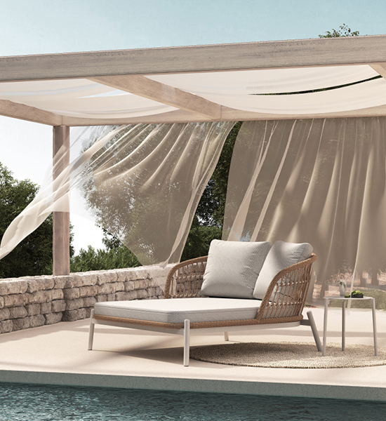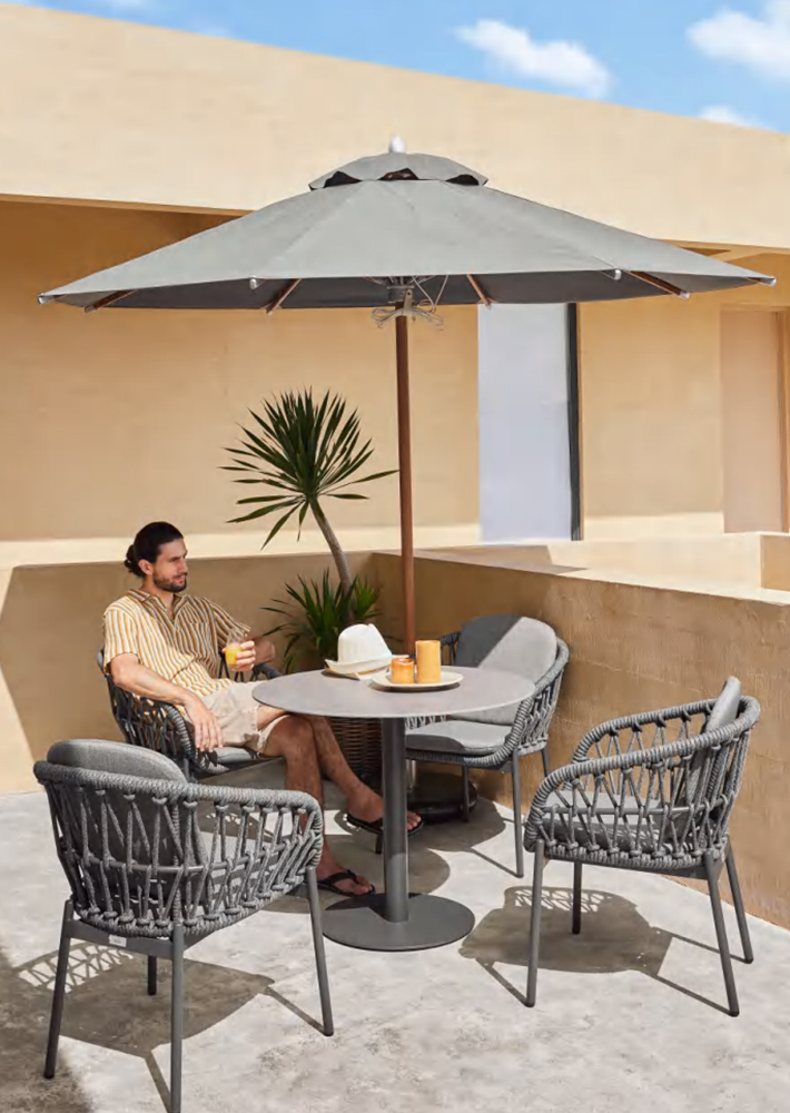 At the heart of Bari lies a high-performance aluminum frame, chosen for its remarkable strength and ethereal lightness. This foundation allows for a sophisticated silhouette that remains easy to rearrange as the sun shifts across your terrace. Powder-coated for maximum durability, the frame acts as a silent, rust-resistant skeleton that supports the collection’s delicate exterior, ensuring that your investment in style is protected against the changing seasons.